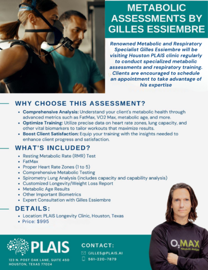 Renowned Metabolic and Respiratory Specialist Gilles Essiembre will be visiting Houston PLAIS clinic regularly to conduct specialized metabolic assessments and respiratory training. Clients are encouraged to schedule an appointment to take advantage of his expertise.